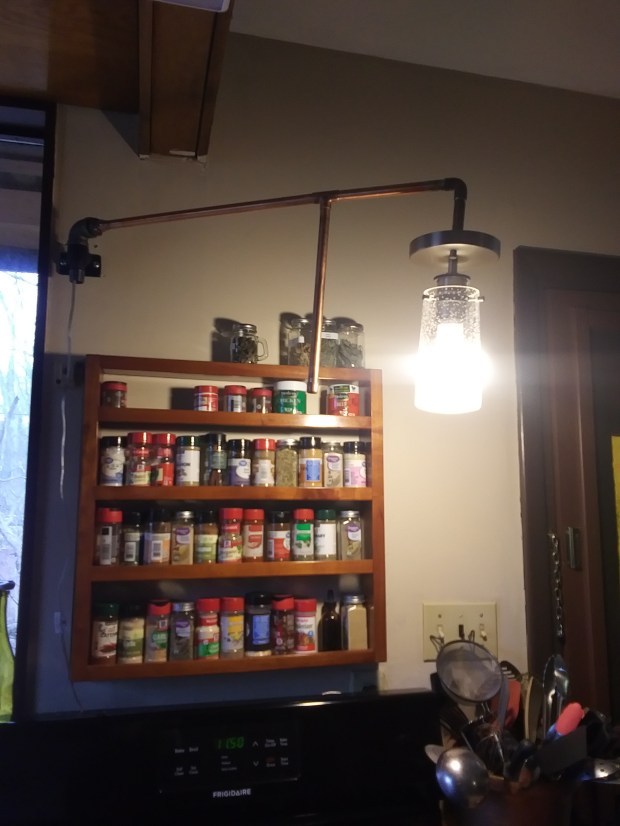 Speaking of not listening, Husband has been fitted for hearing aids. He did a two-week trial and it wasn’t great because of the fit, but he did hear better, so away we go into the world where he has less ability to say, “I didn’t hear that part,” about whatever I ask him to do. He did make this light for me though.